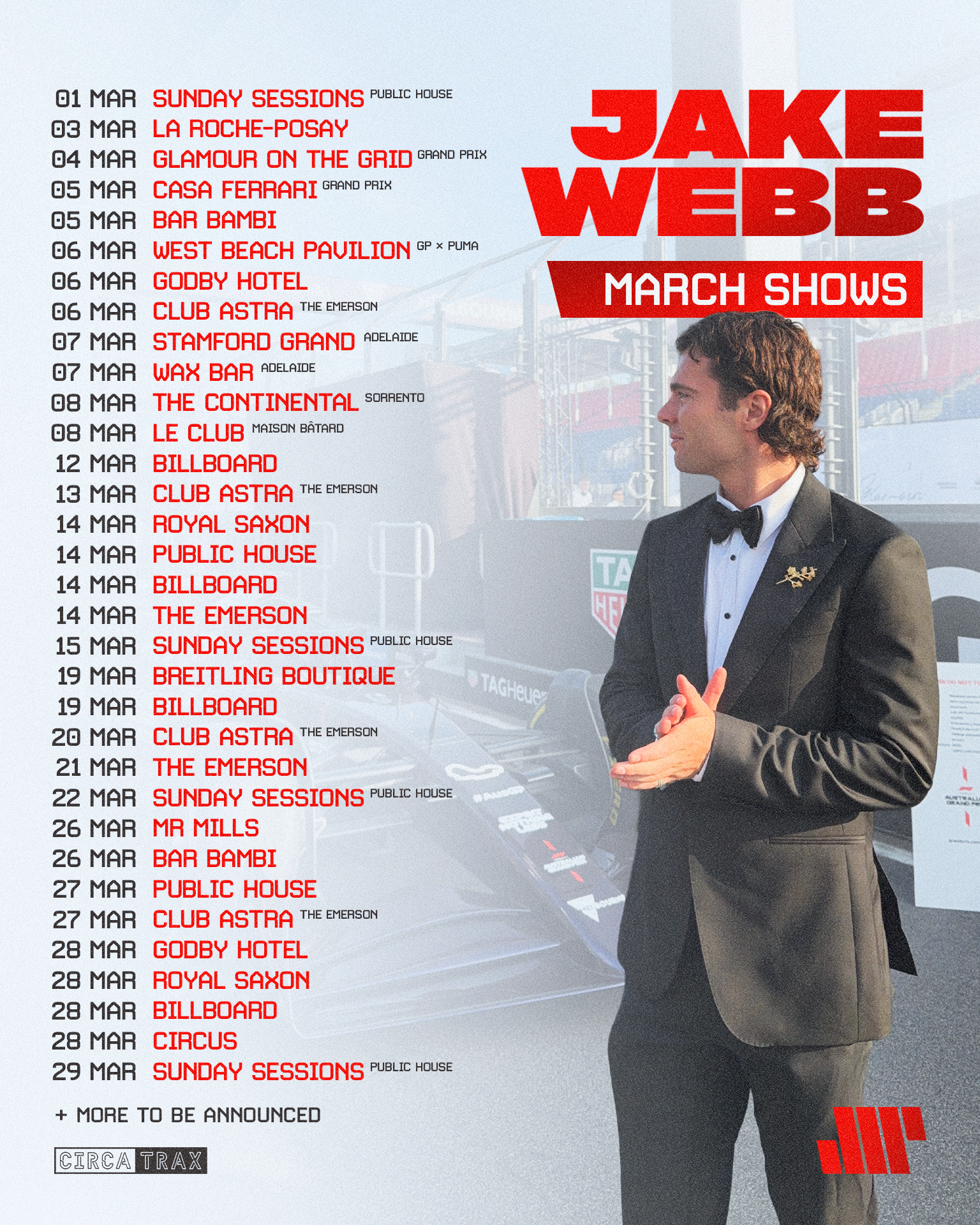 But his reach doesn’t stop there. He’s graced the stages of Australia’s biggest festivals, including Beyond The Valley, and brought his versatile sound to global events like the Australian Grand Prix, The Melbourne Cup and The Australian Open.
